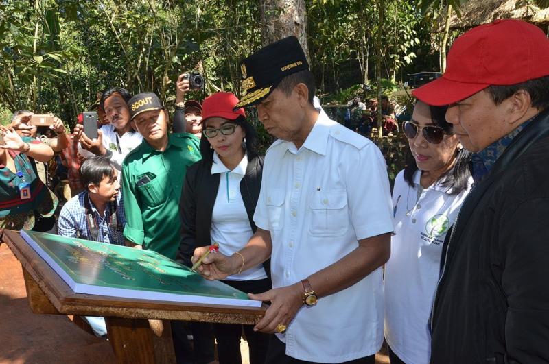 BALI TRIBUNE - Gubernur Bali Made Mangku Pastika meresmikan Showcase (ruang pameran) Ekowisata Hutan Desa Wanagiri di Obyek Wisata Air Terjun Banyumala, Kecamatan Sukasada Buleleng, Jumat (24/8). Satu hal yang ditekankan Gubernur Bali dalam sambutannya adalah agar lingkungan alam Wanagiri tetap dijaga. “Terima kasih kepada pemerintah yang memberi akses ke hutan, tapi harus dijaga,” kata Pastika. Ia berharap pengunjung dan masyarakat sekitar benar-benar menjaga kebersihan kawasan ekowisata hutan Desa Wanagiri. Bahkan, Ia menambahkan jika memungkinkan tidak membawa plastik ke kawasan itu. “Harus bebas sampah plastik,” tegasnya. Pastika juga menghimbau kepada siapapun yang melihat sampah plastik di kawasan tersebut agar segera memungut dan membuangnya pada tempatnya. Menurut Gubernur Pastika, sebagai tempat obyek wisata air, hutan Wanagiri berfungsi menjaga air. Itulah sebabnya menjaga hutan sama dengan menjaga air, tambahnya. “Hutan ini untuk memelihara air. (Upacara) Wanakerti itu ada sekaligus untuk memelihara Wisnu (Dewa pemelihara/Dewa Air),” kata Pastika. Gubernur Pastika juga berkesempatan meninjau pameran dari Komunitas Jejaring Pemerhati Lingkungan (Jepri-Link) yang menampilkan produk-produk berbasis penyelamatan lingkungan seperti eco-brick, komposter dan produk lainnya. Selain itu ada pula pameran produk-produk masyarakat yang berbasis kearifan lokal yang menampilkan berbagai olahan makanan produksi masyarakat lokal. Untuk memperindah kawasan hutan Gubernur Pastika bersama Anggota DPR RI Tutik Kusumawardhani melakukan penanaman anggrek di kawasan tersebut. Peresmian dihadiri Dirjen Perhutanan Sosial dan Kemitraan Lingkungan Kementerian Kehutanan RI Bambang Supriyanto, dan Kepala Dinas Kehutanan Provinsi Bali Drh. Luh Ayu Aryani, MP serta stakeholders di bidang ekowisata.