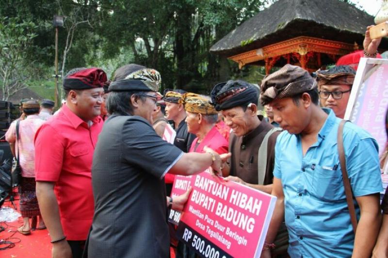 Bupati Giri Prasta dalam sambutannya mengatakan penyerahan dana hibah ini merupakan program Angelus Bhuana yang bermakna "Badung Berbagi dari Badung untuk Bali". Sudah menjadi komitmennya sejak awal untuk meringankan beban masyarakat umat sedharma didalam melestarikan dan menjaga, adat, tradisi, seni dan budaya Bali, bantuan hibah ini sebagai bentuk sayang dirinya terhadap sesama.