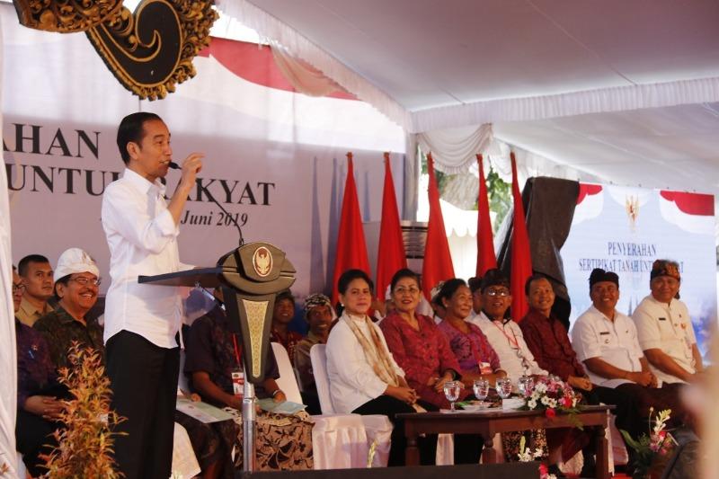 Bali Tribune/ SERTIFIKAT - Presiden Jokowi di Pasar Sukawati dan di Bangli menyerahkan sertifikat kepada warga.