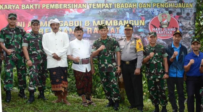 BALI TRIBUNE - Menyambut peringatan Hari Juang Kartika (HJK) yang diperingati rutin setiap 15 Desember, Kodam IX/Udayana menyelenggarakan kegiatan bakti sosial (baksos) dan karya bhakti di Dusun Purwayu, Desa Tri Buana, Kecamatan Abang, Kabupaten Karangasem. “Pemilihan areal Pura Luhur Lempuyang ini sebagai sasaran penghijauan dan pembersihan tempat ibadah, karena di areal ini sangat subur dan sering terjadi tanah longsor. Dengan adanya penghijauan ini semoga dapat membantu menjaga kelestarian lingkungan, sehingga tidak mudah longsor dan dapat mempertahankan ketersediaan air bawah tanah di daerah ini,” harap Pangdam IX/Udayana Mayjen TNI Benny Susianto, SIP., kemarin. Untuk jangka panjang kata Pangdam, melalui penghijauan ini, selain dapat menghambat terjadinya pemanasan global juga dapat menambah keindahan dan keasrian pemandangan di areal ini sebagai daya tarik wisatawan untuk berkunjung ke objek wisata di Karangasem. Manfaat penanaman pohon ini memang tidak dapat dirasakan saat ini, tetapi dalam jangka panjang manfaatnya akan sangat terasa untuk kelestarian lingkungan, sekaligus mendukung program pemerintah dalam gerakan kampanye “Indonesia Hijau Berseri”, yaitu bersih, sehat, rapi, dan indah. “Selain penghijauan, kali ini juga dilaksanakan kegiatan bakti sosial berupa pengobatan massal untuk membantu mengatasi permasalahan kesehatan yang dialami oleh masyarakat,” jelas Pangdam. Kapendam IX/Udayana Kolonel Kav Jonny Harianto G, SIP., menambahkan, dalam kegiatan baksos ini meliputi, pengobatan umum, pemeriksaan dan pengobatan gigi, pemeriksaan mata, donor darah, tes IVA dan penyuluhan kesehatan soal “medical check up dan bahaya penggunaan narkoba” serta sosialisasi “werving” atau proses seleksi penerimaan anggota TNI. “Semuanya dipusatkan di lapangan parkir Pura Lempuyang,” kata Kapendam. Kegiatan baksos kesehatan ini mengerahkan 50 tenaga kesehatan, terdiri dari dokter spesialis, dokter umum, dokter gigi, farmasi, paramedis dan pendukung dari satuan Kesdam IX/Udayana, Denkesyah Singaraja, Akademi Keperawatan Kesdam, dan Dinas Kesehatan Kabupaten Karangasem. Dalam kegiatan karya bhakti tutur Kapendam, dilaksanakan penanaman pohon dan pembersihan lingkungan di areal Pura Luhur Lempuyang dengan mengerahkan 2.000 personel dari satuan jajaran Kodam IX/Udayana, Polres Karangasem, PMI, pelajar SMU/SMK Karangasem, dan masyarakat Desa Tri Buana. Selanjutnya, ribuan personel tersebut menanam 2.000 bibit pohon jenis Cempaka dan Majegau. Kegiatan baksos kesehatan dan karya bakti kali ini diawali dengan acara seremonial di lapangan parkir Pura Lempuyang yang dipimpin Pangdam IX/Udayana. Karya bhakti dihadiri Kasdam IX/Udayana Brigjen TNI Kasuri, Irdam IX/Udayana, Danrem 163/Wira Satya, Danrindam IX/Udayana, Kapok Sahli Pangdam, para Sahli Pangdam, Staf Khusus Pangdam, para Asisten Kasdam, LO-AL LO-AU, para Komandan/Kabalak Kodam IX/Udayana, sejumlah pejabat di lingkungan Pemkab Karangasem, para tokoh (masyarakat, agama dan adat) Desa Tri Buana. Pangdam menyempatkan diri meninjau pelaksanaan penyuluhan, donor darah, pelayanan kesehatan. Kemudian menuju tempat penanaman pohon di areal Pura Telaga Mas dan meninjau lokasi karya bhakti pembersihan lingkungan di areal Pura Luhur Lempuyang.