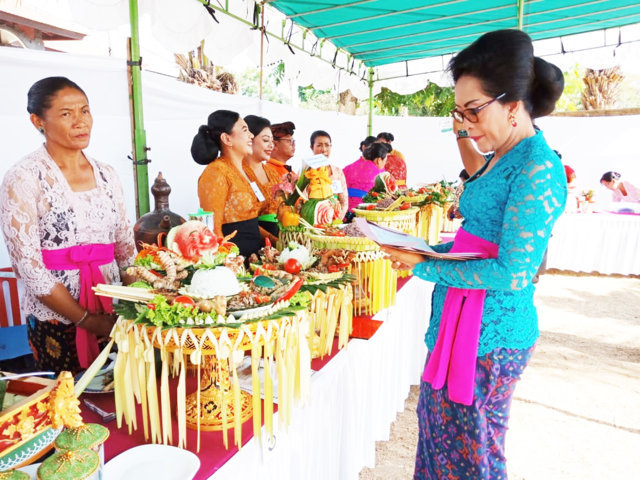 Sementara itu kriteria penilaian meliputi rasa dengan bobot sebesar 40%, penyajian dengan bobot 20%, tekstur dan keragaman bahan dengan bobot 25%, serta kebersihan dengan bobot 15%. Selain Nyonya Putriningsih Wirna, turut hadir sebagai juri lomba adalah I Gede Putu Adi Putera guru dari SMK Triatmajaya Tabanan.