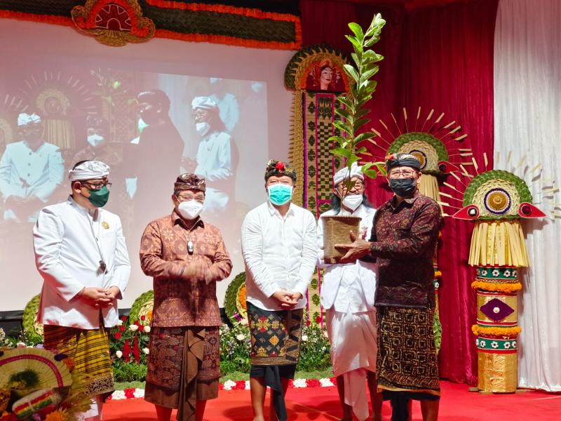 Bali Tribune / LAUNCHING - Bupati Bangli Sang Nyoman Sedana Arta (tengah) dalam acara launching Sastra Saraswati Sewana 2022 di Kintamani, Bangli, Rabu (16/3)