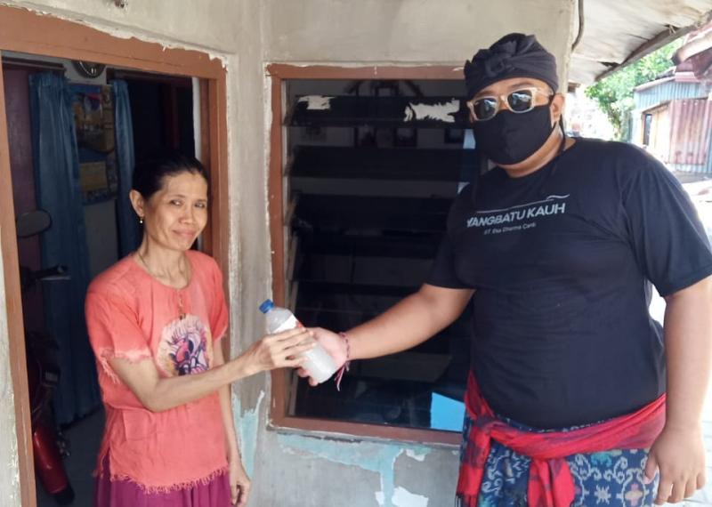 “Sembari memberikan sosialisasi tentang cara penggunaan, dengan pemberian cairan disinfektan ini diharapkan masyarakat dapat melaksanakan pencegahan secara mandiri, hal ini tentu dirasa lebih efektif dan tepat sasaran lantaran dapat dilaksanakan setiap saat,” kata Buda Arka.