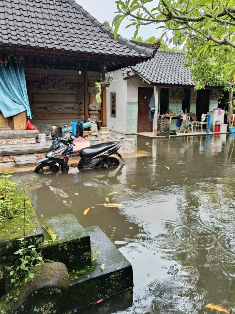 Anehnya, banjir ini hanya mengepung satu pekarangan rumah saja, milik I Made Sura. Sedangkan rumah lain di sekitarnya relatif 'aman' dari terjangan banjir. Usut demi usut, ternyata banjir lokal ini terjadi lantaran posisi pekarangan rumah lebih rendah dari jalan dan got. Sehingga begitu hujan lebat air semua tertampung ke rumah itu.