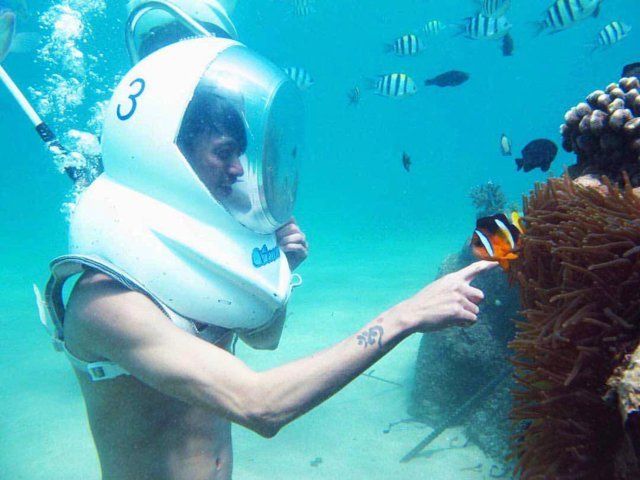 Selain itu wisatawan mengenakan helm oksigen yang telah dirancang secara khusus. Sehingga membuat wisatawan bisa berjalan dengan santai di dasar laut tanpa harus khawatir terbawa arus laut. Dengan wisata ini, wisatawan akan merasa disuguhkan aneka pilihan atraksi wisata selama berada di Bali.