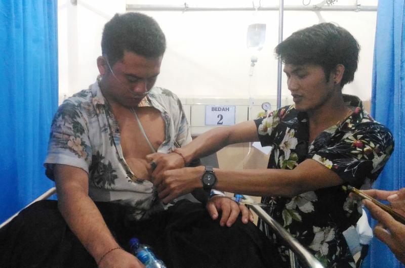 Kemudian Ia pun dibawa ke rumah sakit oleh orangtuanya. "Memang tidak dapat pingsan cuma kaget saja," sambungnya. Akibat kejadian tersebut Ia mengalami luka pada kening, dimungkinkan akibat tertimpa genteng. Selain itu Ia juga mengalami luka pada bagian dada.