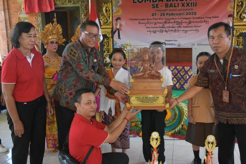 balitribune.co.id | Denpasar - Pemerintah Kota Denpasar memberikan apresiasi atas pelaksanaan Lomba Baca Puisi Tingkat Sekolah Dasar (SD) se-Bali ke-23 yang digelar Sanggar Rare SD Cipta Dharma Denpasar di Museum Bai, Denpasar pada Kamis (27/2) hingga Jumat (28/2). Apresiasi atas terlaksanannya kegiatan tersebut diungkapkan Sekda Kota Denpasar, Ida Bagus Alit Wiradana saat menyerahkan Piala Bergilir Walikota Denpasar kepada pemenang atas nama Kadek Ayu Indira Putri dari SDN 2 Padangbulia Singaraja.