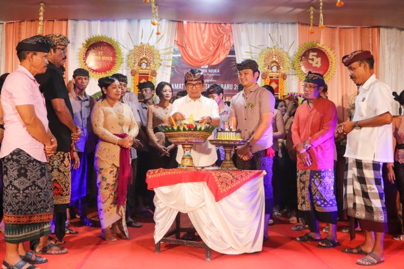 balitribune.co.id | Mangupura - Sekretaris Daerah Kabupaten Badung Badung I Wayan Adi Arnawa mewakili Bupati Badung, menghadiri perayaan HUT ke-54, Sekaa Teruna (ST) Yudha Muka, Banjar Dajan Peken, Desa Mengwitani, Kecamatan Mengwi, sekaligus pengukuhan pengurus baru masa bakti 2023-2025, Minggu (1/1).