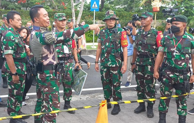 Bali Tribune/ DETAIL - Panglima TNI Jenderal TNI Andika Perkasa mengecek secara detail dan rinci di sekeliling area The Apurva Kempinski Bali, yang akan digunakan selama perhelatan KTT Presidensi G20.