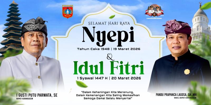 balitribune.co.id | Amlapura - Selamat Hari Raya Nyepi Tahun Baru Caka 1948 dan Hari Raya Idul Fitri 1447 Hijriah. Semoga keheningan Nyepi membawa kedamaian dan introspeksi, serta Idul Fitri menghadirkan kemenangan, kebersamaan, dan saling memaafkan.