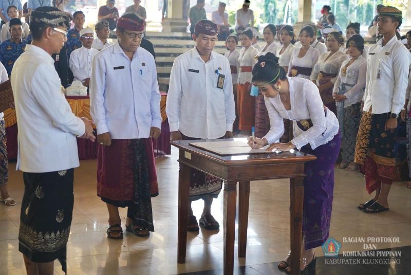 Sebanyak 161 orang menerima Surat Keputusan Bupati tentang Pengangkatan PPPK dan surat pernyataan melaksanakan tugas yang terhitung mulai tanggal 1 Oktober 2025. Penyerahan Keputusan ini turut disaksikan Wakil Bupati Klungkung, Tjokorda Gde Surya Putra, Sekda Klungkung Anak Agung Gede Lesmana, Kepala BKN, dan Kepala OPD dilingkungan Pemkab Klungkung.