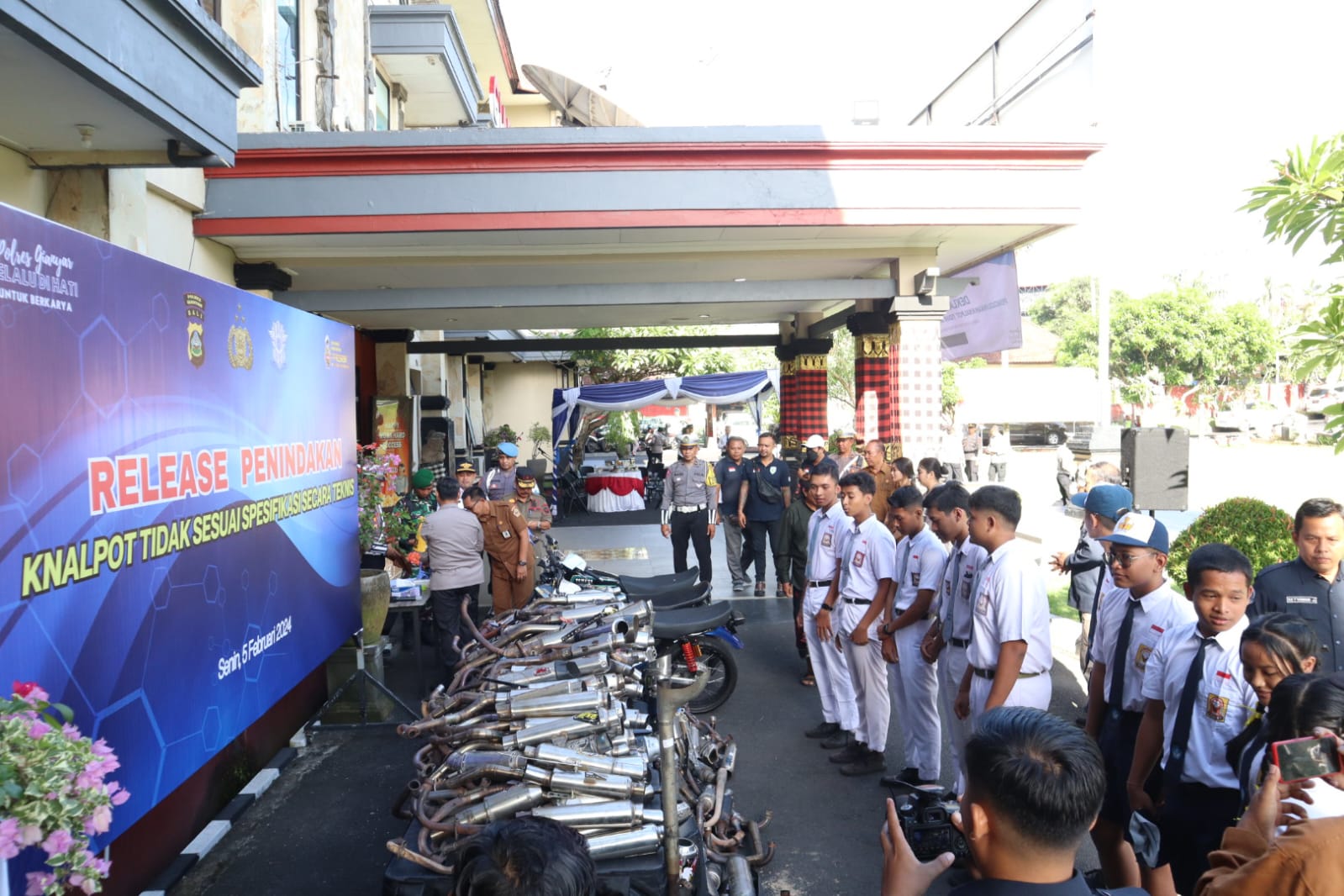 Bali Tribune / DISITA - Para siswa dihadirkan saat gelar realese knalpot brong.