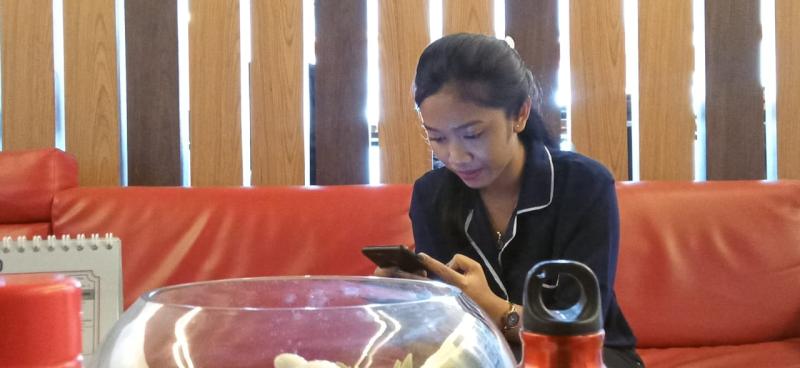 Bali Tribune / Konsumen sedang online booking melalui aplikasi Motorku X untuk service Motor Honda di Rumah