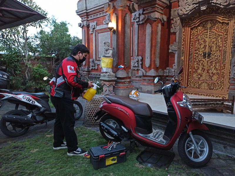 Dalam melayani konsumen agent Honda  Care tetap menerapkan protokol Kesehatan dengan wajib menggunakan masker, membawa hand sanitezer  dan caiiran disenfektan sebelum atau sesudah motor konsumen diperbaiki.