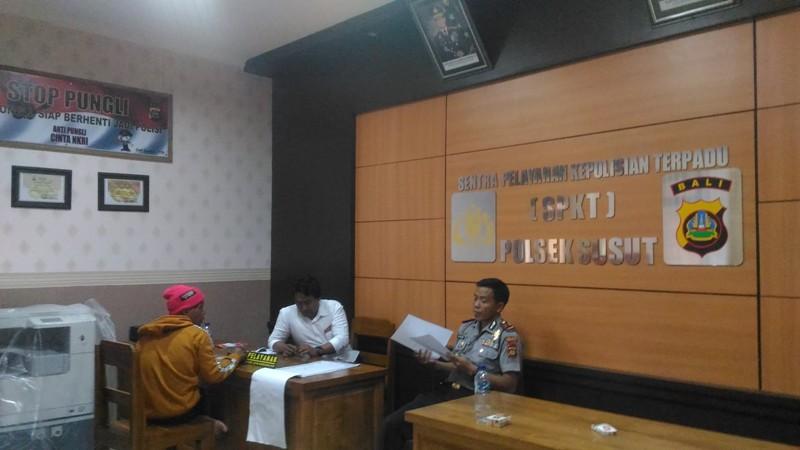 Bali Tribune/ DIPERIKSA - Pelaku I Wayan Purnayasa saat menjalani pemeriksaan di Mapolsek Susut, Bangli, Senin (29/7).