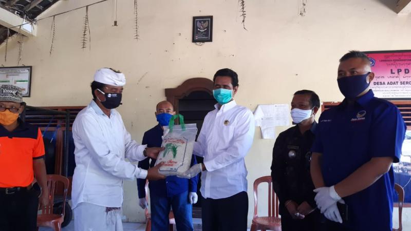 Kepedulian Somvir ditunjukkan dengan mengelontor 1 ton beras, Selasa (12/5). Bantuan tersebut diserahkan melalui Posko Satgas Gotong Royong Pencegahan Covid-19 Desa Adat Serokadan. Penyerahan bantuan Somvir ini disaksikan langsung oleh Camat Susut I Nyoman Sedana, Bendesa Adat Serokadan I Dewa Gede Oka, perwakilan BPBD Bangli, perwakilan polisi dan TNI, anggota DPRD Bangli dari Partai NasDem, perwakilan DPW Partai NasDem Bali, relawan serta perwakilan masyarakat setempat.