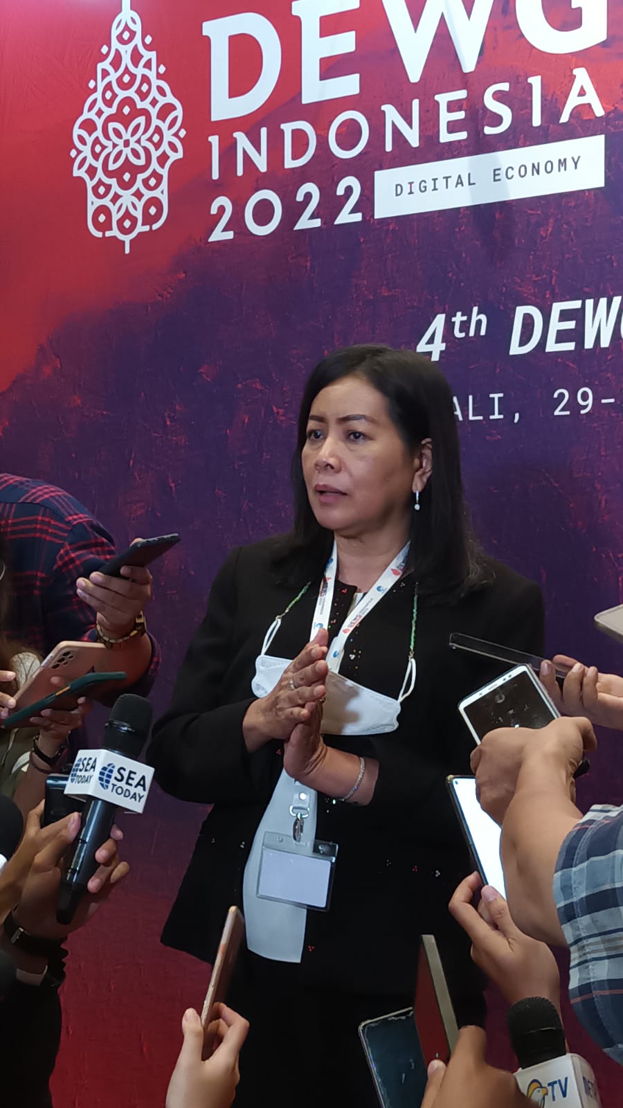 Staf Khusus Menteri Komunikasi dan Informatika (Kominfo) Republik Indonesia, Rosarita Niken Widiastuti kepada awak media saat pertemuan Kelompok Kerja Ekonomi Digital yang Keempat (the 4th G20 DEWG) di Nusa Dua, Badung, Selasa (30/8).