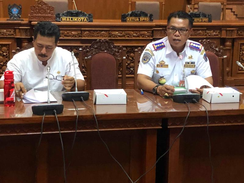 Bali Tribune/ RAPAT KERJA - Rapat kerja antara Dinas Perhubungan Kota Denpasar dengan jajaran DPRD Denpasar terkait perubahan buku KIR menjadi Bukti Lulus Uji Elektronik (BLUE) di ruang pertemuan DPRD Denpasar.