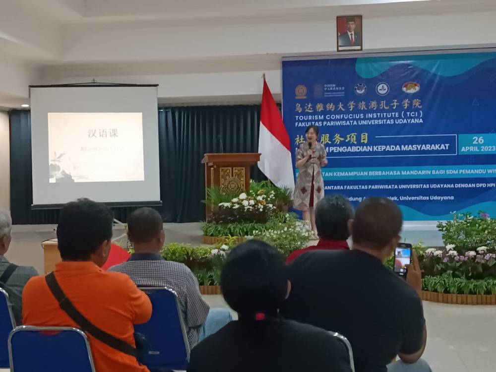 Di Bali, 85 persen guide Mandarin masih dikuasai orang luar. Di Bali sendiri masih minim guide yang menguasai bahasa Mandarin. Dengan fenomena tersebut, Himpunan Pramuwisata Indonesia Provinsi Bali bersama TCI (Tourism Confucius Institute) Fakultas Pariwisata Universitas Udayana (Unud) berinisiatif dalam rangka peningkatan kemampuan berbahasa Mandarin dalam program Pengabdian kepada Masyarakat (PKM) yang dibuka secara resmi pada Rabu (26/4) di Ruang Nusantara Gedung Agrokompleks Unud, Denpasar.