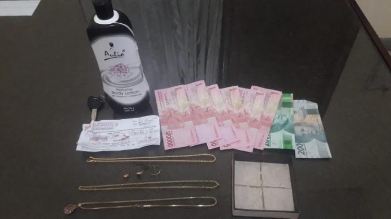 Adapun barang bukti yang berhasil diamankan yakni tiga buah kalung, tiga buah cincin, uang tunai Rp 622 ribu, satu unit sepeda motor, dan barang bukti lainnya.
