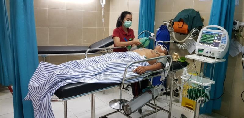 Ketut Redana terkulai lemas tidak sadarkan diri saat menjalani perawatan di IRD RSU Klungkung usai terjatuh saat ngayah di Pura Dasar Bhuwana Gelgel. Jumat (2/11) kemarin.