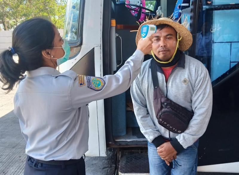 Kemudian untuk para penumpang, baik yang turun maupun naik di terminal tipe A di Bali itu wajib dicek suhu tubuhnya menggunakan thermometer scanner atau infrared. Langkah antisipasi ini untuk memastikan transportasi massal aman dari virus Corona.