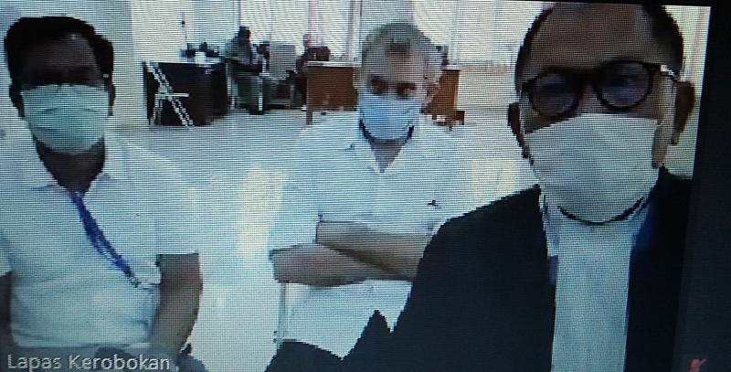 Saat persidangan itu, terdakwa didampingi penerjemah bahasa dan penasehat hukumnya berada di Lapas Kelas II A Kerobokan. Sedangkan majelis hakim dan jaksa penuntut umum (JPU) berada di Pengadilan Negeri (PN) Denpasar. Mereka terhubung melalui telekonferensi.