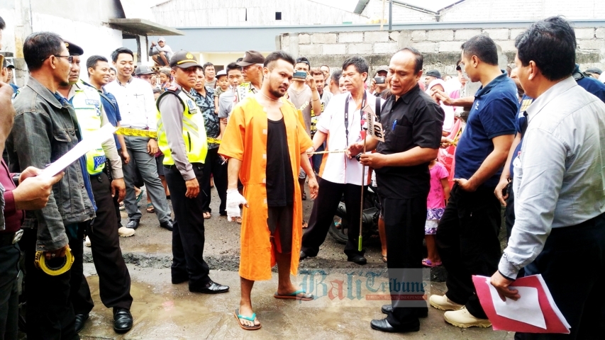 Tersangka memperagakan 18 adegan yang dibagi beberapa sub adegan, dengan total 37 adegan. Dalam rekonstruksi, terlihat tersangka yang berprofesi sebagai calo tiket di Terminal Ubung ini memutus urat leher kanan korban dengan sekali gorok.