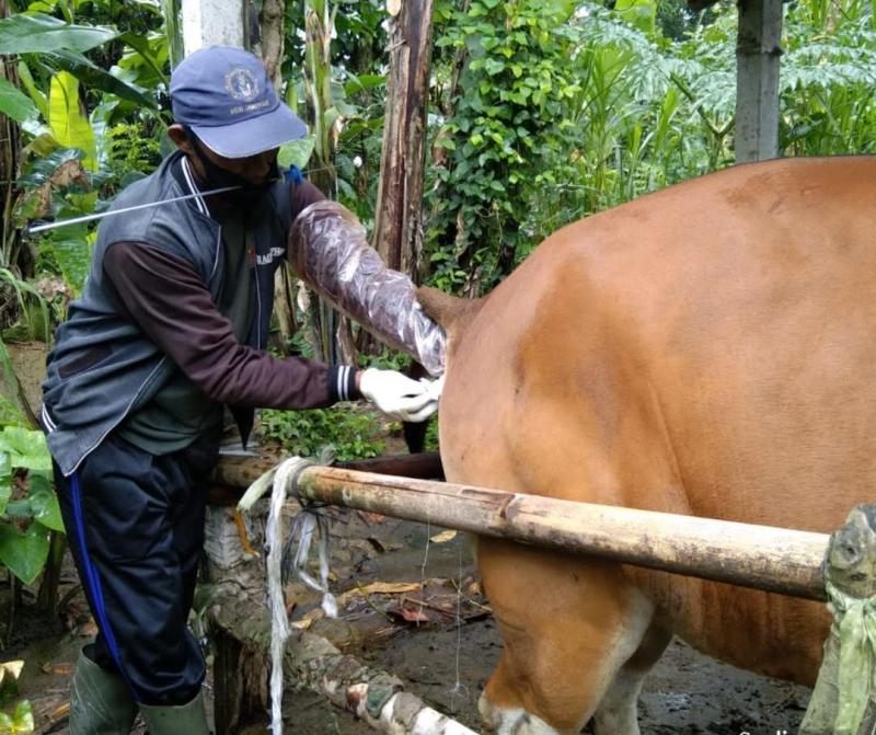 Bali Tribune/ SUNTIK - Petugas saat lakukan proses kawin suntik