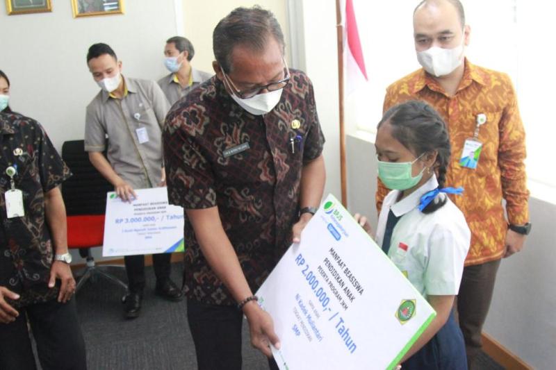 balitribune.co.id | Gianyar - Anak dari peserta BPJS Ketenagakerjaan berkesempatan memperoleh beasiswa pendidikan dari jenjang TK sampai dengan perguruan tinggi. Sebagaimana yang diterima 3 siswa di Gianyar yakni Gusti Ayu Mas Apsarini (siswa SD), Ni Kadek Muliantari (siswa SMP), dan Gusti Ngurah Junior Ardhiawan (siswa SMA). Mereka menerima beasiswa pendidikan karena orang tuanya meninggal dunia.