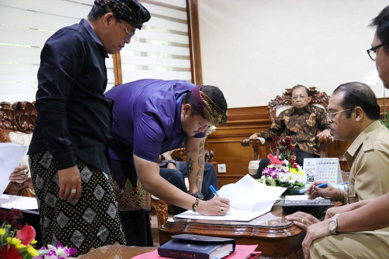 Ketua dan Sekretaris Laskar Bali dan Baladika menandatangani pernyataan tertulis langsung disaksikan Gubernur Bali Wayan Koster dan Sekda Dewa Made Indra. Sementara Ketua PBB yang berhalangan hadir dan diwakili sekretarisnya telah menyampaikan komitmen menandatangani surat pernyataan tersebut.ris