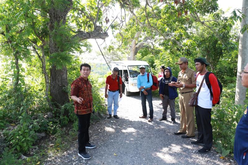 balitribune.co.id | Semarapura - Demi memberikan kenyamanan dalam berkendara di Wilayah Nusa Ceningan, Bupati Klungkung I Nyoman Suwirta didampingi Camat Nusa Penida Komang Widiasa Putra melakukan peninjauan terhadap infrastruktur jalan lingkar di Nusa Ceningan, Senin (20/1).