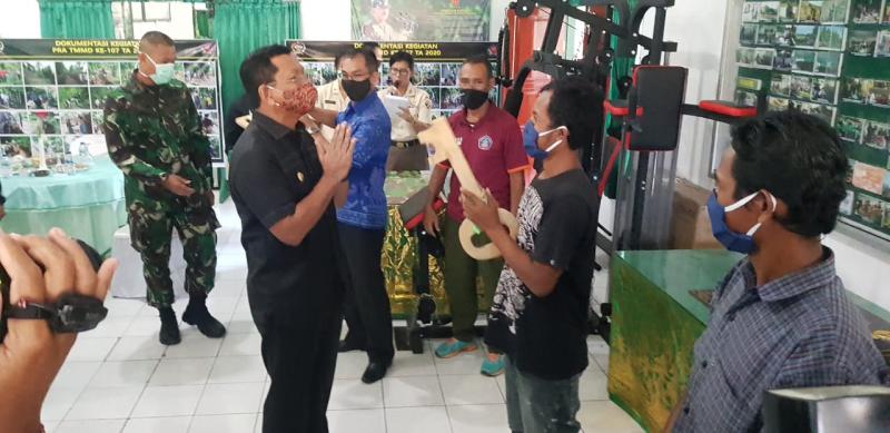 balitribune.co.id | Singaraja - Kendati dihantui ke khawatiran oleh wabah corona virus (Covid-19), namun semangat juang TNI untuk menuntaskan program TNI Manunggal Membangun Desa (TMMD) tak juga surut. Dengan mengusung tema, ’TMMD Pengabdian Untuk Negeri’, Pasukan TNI dari Kodim 1609/Buleleng, terus berupaya menyelesaikan seluruh program TMMD ke -107, tahun 2020 di Desa Panji Anom, Kecamatan Sukasada, Kabupaten Buleleng, selesai tepat waktu. Hasilnya cukup melegakan, hampir semua program yang telah direncanakan selesai sesuai target. Menariknya, pada acara penutupan, sejumlah warga dari kalangan kurang beruntung mendapat bantuan berupa bedah rumah, pemberian kursi roda termasuk sembako. Komandan Satgas TMMD sekaligus Dandim 1609/Buleleng Letkol, inf. Muhamad Windra Lisrianto, SE, MIK, Selasa (14/4) menutup kegiatan TMMD ke-107 di ruang Rapat Kodim 1609/Buleleng bersama Wabup Buleleng I Nyoman Sutjidra, Ketua DPRD Buleleng Gee Supriatna serta sejumlah pejabat Forum Muspida, Kajari Buleleng, Nur Chusniah, Wakapolres Buleleng, Kompol Loduwyk Tapilaha, S.I.K dan Rektor Undiksha, Singaraja,Prof.Dr.I Nyoman Jampel. Sejumlah agenda yang telah direncanakan pada kegiatan TMMD di Desa Panji Anom adalah membangun sarana dasar yang cukup vital bagai masyarakat setempat. Diantaranya pembuatan akses jalan sepanjang 747 meter dan penyediaan sarana air minum berupa jaringan pipa air sepanjang 8.360 meter dan 3 unit bak lepas tekanan dan 1 unit reservoar air. Tak hanya itu, pekerjaan lainya yang tuntas tepat waktu yakni bangunan Mandi Cuci Kakus (MCK) sebanyak 5 unit berlokasi di  5 tempat, yakni Banjar Dinas Lebahsiung, Banjar Dinas Batupulu, Banjar Dinas Pancoran dan Banjar Dinas Abasan. Dandim 1609/Buleleng Letkol, inf. Muhamad Windra Lisrianto mengatakan, pembuatan akses jalan sepanjang 747 meter, dengan rabat beton sepanjang 340 meter lebar 4 meter dan ketebalanan 12 cm. Tak hanya itu, dibuat dua akses jalan baru sepanjang 100 meter dan 417 meter dengan lebar 3 meter. Dandim juga menyebut pembangunan jaringan pipa sepanjang 8.360 meter untuk memudahkan warga mengakses air bersih. Dan 5 MCK yang disebar di 5 banjar dinas di desa tersebut. “Karena masih situasi wabah Covid-19, kami memberikan edukasi soal virus corona serta westafel sebanyak 20 unit, disinfektan dan 1.500 masker untuk warga Desa Panji Anom. Alhamdulillah dalam situasi Covid-19 dengan menjaga physical distancing beserta seluruh TNI yang ikut dalam kegiatan itu,” jelas Dandim. Ditengah pandemic Covid-19, Dandim menyebut kegiatan TMMD penuh tantangan. Beruntung kegiatan tersebut selesai tepat waktu karena terbantu oleh kegiatan pra TMMD sebulan sebelumnya. “Personil yang terlibat sebanyak 150 orang dengan pengaturan kerja yang begitu ketat agar tetap mematuhi ketentuan social distancing maupun physical distancing termasuk penggunaan masker. Bersykur semua tuntas sesuai rencana kendati dengan aturan yang cukup ketat ditengah situasi pandemic Covid-19,”ujarnya. Sementara Wabup Sutjidra mengatakan, warga masyarakat sangat terbantu dengan program TMMD ke 107 beserta seluruh programnya selesai tepat waktu. ”Kami memberikan apresiasi kepada prajurit TNI karena hasil TMMD sangat membantu memudahkan akses layanan dasar mereka terutama jaringan air minum yang telah dibangun. Kita jaga bersama termasuk oleh aparat desa agar terus bisa dinikmati oleh masyarakat,” ucap Sutjidra. Hal yang sama disampaikan Kepala Desa/Perbekel Desa Panji Anom, Made Gina. Kata dia, TMMD oleh TNI manfaatnya sangat dirasakan masyarakat. Terutama akses jalan lebih mudah terutama untuk membawa hasil bumi petani ke lokasi pemasaran. ”Manfaat jalan yang dibangun TNI, selain mempermudah warganya membawa hasil bumi, anak-anak sekolah sangat terbantu memperpendek jarak tempuh yang sebelumnya mengambil jalan memutar,” jelas Made Gina. Disamping itu, Made Gina mengungkap soal kebutuhan air bersih bagi warganya. Setelah terbangunnya jaringan pipa maupun bak penampung air sudah tertatat sehingga distribusi air merata ke rumah-rumah warga.”Tinggal memperbesar debit air yang saat ini berada di kisaran 7-8 detik/liter dari sebelumnya yang jauh lebih kecil. Saya berharap ini bisa dikelaola untuk bisa menambah PAD desa,” tandas Gina.