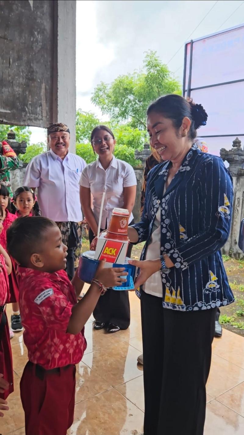 balitribune.co.id | Amlapura - Ketua Tim Penggerak PKK Kabupaten Karangasem, Nyonya Mas Parwata, bersama jajaran TP PKK Karangasem melaksanakan kegiatan sosial di wilayah Kecamatan Kubu, Rabu (22/4/2026). Kegiatan diawali dengan penyerahan bantuan paket buku tulis kepada siswa di SD Negeri 5 Tulamben dan SD Negeri 4 Tulamben. Bantuan tersebut merupakan dukungan dari Wakil Presiden Republik Indonesia, Gibran Rakabuming Raka, sebagai bentuk perhatian terhadap dunia pendidikan, khususnya bagi anak-anak di wilayah pedesaan.
