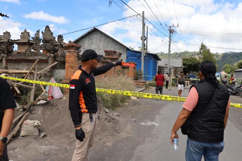 Bali Tribune / OLAH TKP – Anggota Kepolisian dari Polres Bangli melakukan olah tempat kejadian perkara (TKP) di Desa Songan Kecamatan Kintamani