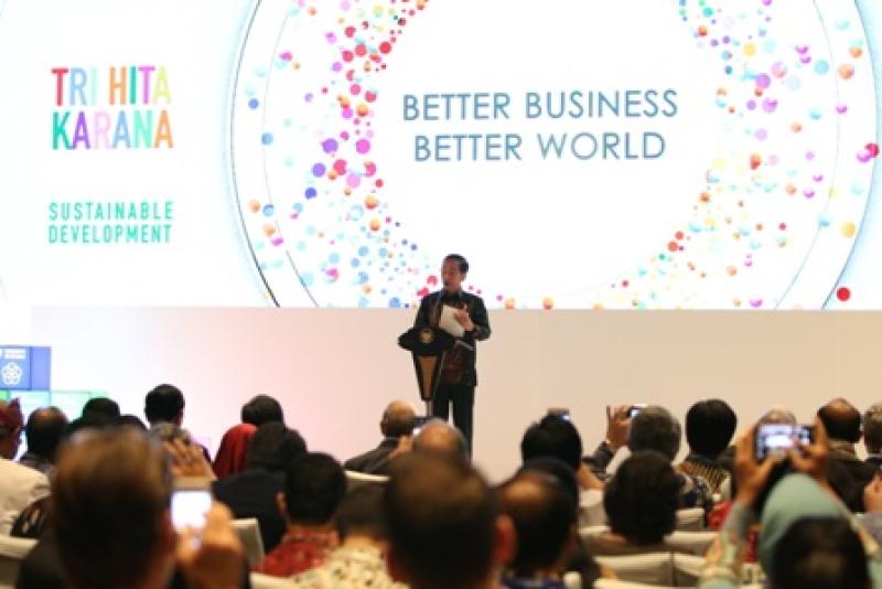 KEYNOTE SPEAKER - Presiden RI Joko Widodo yang menjadi keynote speaker pada acara Tri Hita Karana on Sustainable Development Forum 2018 di Hotel Sofitel, Nusa Dua, Kamis (11/10).