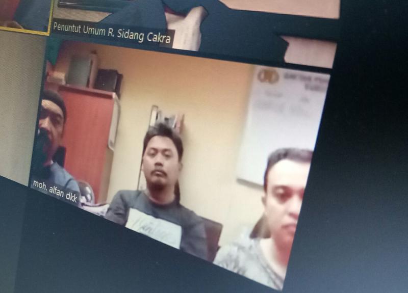 Bali Tribune/ Para terdakwa saat mengikuti sidang secara telekonferensi