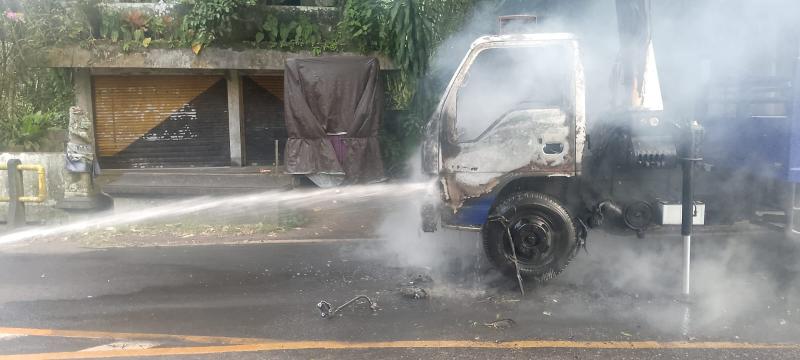 Sementara itu, Kepala Dinas Perhubungan Kabupaten Gianyar, I Wayan Artawan, menyebut kendaraan terbakar saat sedang menjalankan tugas pemangkasan pohon bersama Dinas PUPR. “Diduga kebakaran dipicu korsleting pada sistem kelistrikan di bagian depan kendaraan,” ujarnya.