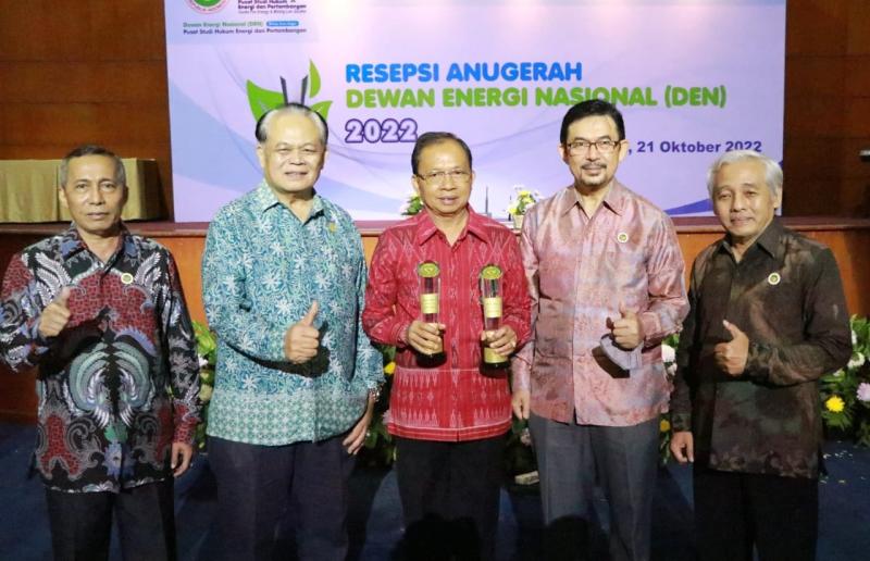 balitribune.co.id | JakartaPemprov Bali di bawah kepemimpinan Gubernur Bali Wayan Koster dan Wagub Prof. Tjokorda Oka Artha Ardhana Sukawati (Cok Ace) menorehkan prestasi di tingkat nasional dalam bidang Rencana Umum Energi Daerah (RUED). Dewan Energi Nasional (DEN) menganugerahkan dua penghargaan yang langsung diterima Gubernur Bali Wayan Koster pada acara Pemberian Anugerah DEN Tahun 2022 di Hotel Bidakara, Jakarta, Jumat (21/10). Bali meraih penghargaan terbaik kedua kategori  Implementasi Perda RUED : “Daerah yang Melaksanakan Transisi Energi” dan menempati posisi ketiga sebagai daerah yang paling aktif mengkampanyekan energi bersih .