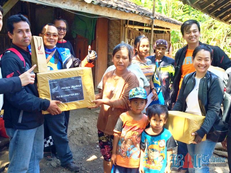 KOMUNITAS roda dua Honda Big Bike Indonesia (HOBI) Bali mengadakan touring sekaligus bakti sosial ke wilayah Penyaringan, Negara. Touring Charity bertemakan ‘ Satu Hati Berbagi’ untuk merayakan hari raya Galungan dan Kuningan diikuti 30 bikers.
