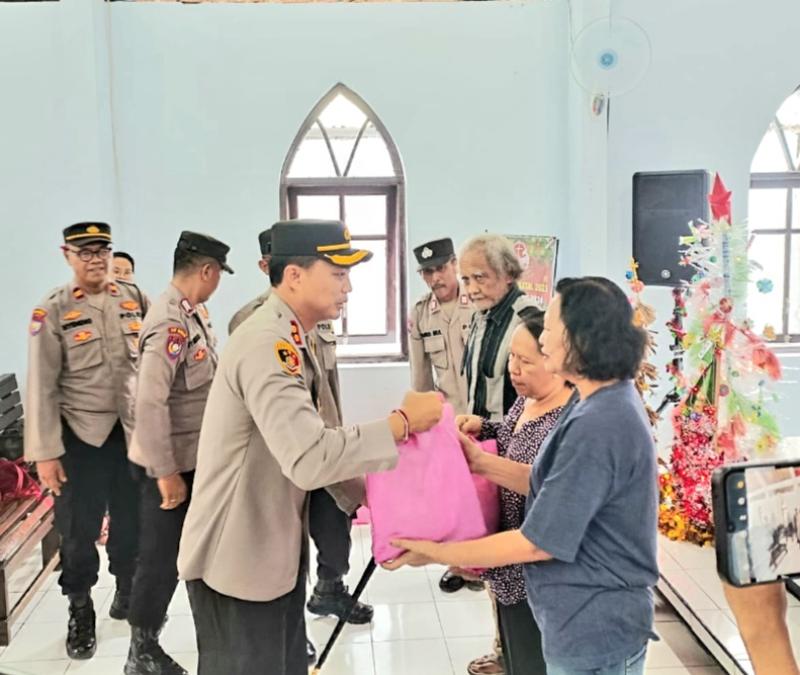 balitribune.co.id | Singaraja - Kapolres Buleleng AKBP Ida Bagus Widwan Sutadi menemui Jemaat Kristiani di GKPB Air Hidup, Desa Banyupoh, Kecamatan Gerokgak, Minggu (7/1/2024). Di hadapan jemaat Widwan mengatakan kehadiran di tengah jemaat merupakan program Polri dari tingkat pusat hingga ke jajaran merupakan program Mingu Kasih.