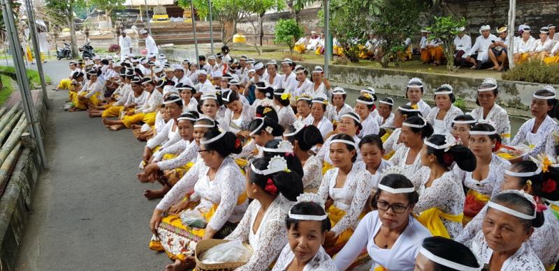 BALI TRIBUNE - Serangkaian karya Upacara Tawur Memungkah,mecaru melaspas mendem pedagingan, masupati prelingge lan ningkup di Pura Puseh, Beji danPura Yasa. Upacara  ini merupakan paletan yang ke 13 dari 33 tahapan rangkaian upacara Karya Memungkah, Nubung Pedagingan, Ngenteg Linggih, Pedudusan Agung, Tawur Panca Wali Krama, Mahayu Jagat, Marisuda Gumi di Pura Dasar Buana Gelgel,KLungkung ini. Dalam ritual ini hadir juga Bupati Klungkung Nyoman Suwirta dan Nyonya Ayu Suwirta sebagai murdaning jagat Klungkung sekaligus menyaksikan pelaksanaan Karya kali ini. Juga hadir Ide Dalem Semaraputra,serta Pengeling Pura dasar Buana Gelgel, Klungkung Cokorda Gde Ngurah dari Puri Klungkung serta para  panitia karya dan para Klian Banjar Adat sejebag Desa Pakraman Gelgel, Klungkung Menurut Bendesa Pakraman Gelgel Putu Arimbawa,SH pelaksanaan paletan upakara ini dilaksanakan antara lain di pura puseh  yang dipuput dua orang  peranda yaitu  Ide Peranda Gde Kediri Putra Keniten dari Gria Kediri dan Ide Peranda Gde Wayan Jelantik dari  Gria wanasari,Karangasem.  Sementara itu di Beji dipuput  Ide Peranda Gde Kemenuh  dari Gria Kutuh ,Kamasan, sementara di  Pura Yasa  dipuput Ide Peranda Gde Rai Pidada dari Gria Sengguhan, Klungkung. Pelaksanaan Karya yang ke 13 dari runtutan jelang upacara puncak  Karya Memungkah, Nubung Pedagingan, Ngenteg Linggih, Pedudusan Agung, Tawur Panca Wali Krama, Mahayu Jagat, Marisuda Gumi di Pura Dasar Buana Gelgel,KLungkung ini menurut  manggala Kordinator  karya Mamungkah ini Dewa Ketut soma menyebutkan pada  rahine   Bude umanis julung wangi Rabu(12/12/2018 ) kali ini digelar upakara memungkah,mecaru melaspas mendem Pedagingan Masupati Prelingge lan Ningkup di Pura Puseh,Beji danPura Yasa. “Rangkaian Upakara jelang puncak upacara Karya Memungkah, Nubung Pedagingan, Ngenteg Linggih, Pedudusan Agung, Tawur Panca Wali Krama, Mahayu Jagat, Marisuda Gumi di Pura Dasar Buana Gelgel, Klungkung merupakan paletan runtutan Karya  memungkah,mecaru melaspas mendem Pedagingan Masupati Prelingge lan Ningkup di Pura Puseh, Beji dan Pura Yasa merupakan runtutan paletan yang ke 13 dari 33 tahapan jelang Puncak karya yang jatuh pada tanggal 31 Desember 2018 tahun ini,” ujar Manggala Karya Dewa Ketut Soma.  Menurutnya, berbagai tarian wali ritual yang ditampilkan serangkaian karya kali ini antara lain sesolahan ditampilkan Topeng Sidekarya, rejang dewa, rejang rentet dan Baris Gede. Ritual karya kali ini para krama lanang istri tampak tumpah ruah padati areal Pura Puseh, Beji dan Pura Yasa diwewengkon Pura Dasar Buana, Gelgel, Klungkung.