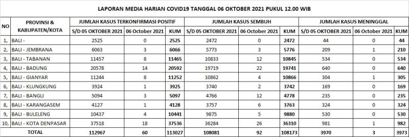 Jumlah kasus secara kumulatif se Bali, untuk Positif ada 113.027 orang. Pasien sembuh selama pandemi, dicapai sebanyak 108.173 orang.