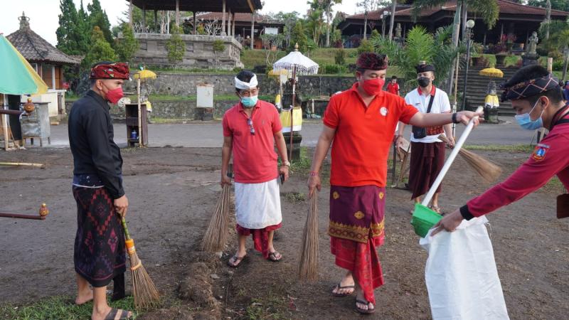 Bupati Gede Dana juga turut aktif dan tanpa canggung ikut menyapu serta mengangkut sampah yang didominasi sampah plastik ke tempat pembuangan. Menurut Bupati Dana, karena ini merupakan Pura terbesar dan kawasan suci dan disucikan bagi umat Hindu, maka umat beramai-ramai datang untuk berdoa menyembah kepadaNya agar diberikan keselamatan, kerahayuan, dan kesejahteraan. Namun di satu sisi, masih ada perilaku masyarakat yang kurang sadar menjaga kebersihan kawasan suci ini.