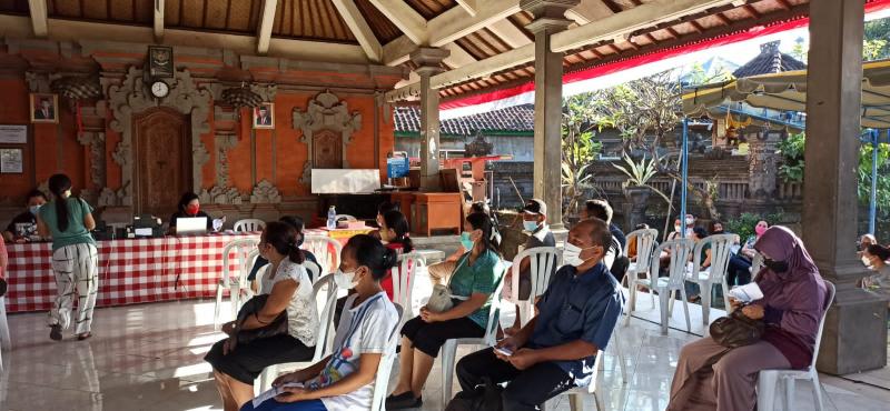 Perbekel Desa Dangin Puri Kangin I Wayan Sulatra mengatakan, pelaksanaan vaksinasi dosis 2  ini diikuti empat banjar yakni Banjar Kertha Bhuwana, Banjar Mertha Nadi, Banjar Kreneng dan Banjar Kreneng Kaja. Sasaran Vaksin tahap kedua  sebanyak 371 orang.   Karena ada yang berhalangan karena sakit dari jumlah yang terdata  yang mengikuti vaksin sebanyak  240.