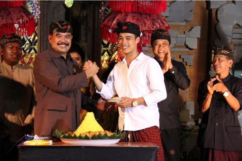 Wabup Kasta lakukan pemotongan tumpeng saat hadir pada malam hiburan serangkaian peringatan HUT ST Citta Dharma Stanu ke-40 Tahun di Balai Banjar Mungguna Desa Pakraman Penasan,Klungkung belum lama ini.