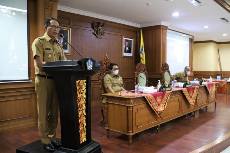 balitribune.co.id | Mangupura - Mengingat masih dalam situasi Pemberlakuan Pembatasan Kegiatan Masyarakat (PPKM), Pemerintah Kabupaten Badung menggelar Musrenbang Rencana Kerja Pemerintah Daerah (RKPD) Kecamatan Tahun 2022 secara virtual (Aplikasi Zoom Meeting). Musrenbang  yang mengusung tema “Percepatan Pemulihan Ekonomi Daerah Melalui Revitalisasi Sektor Unggulan dan Penguatan Ekonomi Kerakyatan" ini dibuka oleh Wakil Bupati Badung I Ketut Suiasa dari Ruang Kriya Gosana, Puspem Badung, Selasa (2/2/2021).