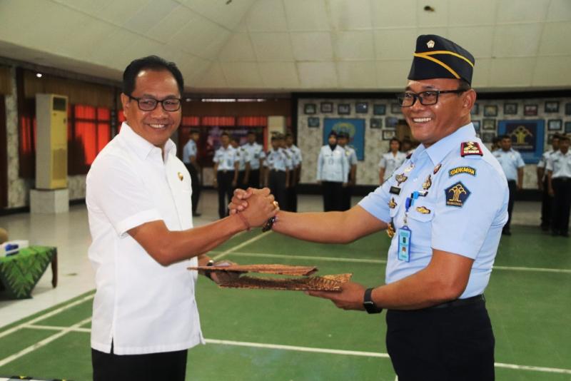 Wabup Badung, I Ketut Suiasa, sekaligus Ketua pelaksana KPA Kab. Badung, bersama Kepala LP Kelas II A Kerobokan, Tonny Nainggolan, seusai penandatanganan perjanjian kerjasama di Aula LP Kelas II A Kerobokan, Rabu (16/1).