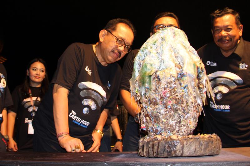 balitribune.co.id | Mangupura - Sebagai wujud dukungan, Pemerintah Provinsi Bali membuat surat edaran nomor 660/2505/Dlh/Bid.I/2019 tentang Earth Hour Indonesia 2019 kepada semua pihak yang ada di Bali utnuk mematikan lampu dan peralatan elektronik selama satu jam. Earth Hour tahun ini fokus pada peningkatan kesadaran serta tindakan yang menginspirasi penurunan emisi gas rumah kaca. Untuk itu melalui gerakan ini diharapkan tidak hanya menjadi sekedar kampanye melainkan menjadi gaya hidup sehari-hari dan diikuti juga dengan gaya hidup yang ramah lingkungan. Demikian harapan Wakil Gubernur Bali Tjokorda Oka Artha Ardhana Sukawati (Cok Ace) yang disampaikan saat menghadiri Acara selebrasi Gerakan “Earth Hour Indonesia 2019” di Tugu Mandala, Kawasan ITDC, Nusa Dua, Badung, Sabtu (30/3).