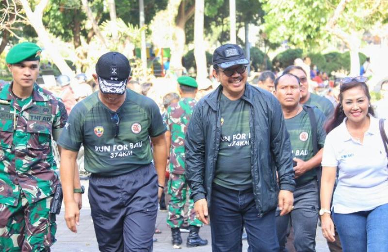 balitribune.co.id | Denpasar - Dalam rangkaian memperingati HUT TNI ke 74, Pangdam IX Udayana menggelar lari marathon yang bertajuk Run For Bali 374 KM dengan rute berkeliling Bali. Para kontingen lari yang dimotori oleh Serka Dewa Gede Astawa secara resmi dilepas oleh Wakil Gubernur Bali Tjokorda Oka Artha Ardhana Sukawati didampingi oleh Pangdam IX Udayana Benny Susianto, di Depan Makodam IX Udayana, Denpasar, Selasa (1/10) sore.